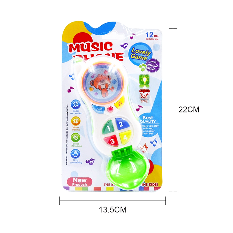 اللعبة عباره عن تليفون بحجم المحمول مناسب ليد طفلك به 2 دائره العليا بها صوره لدبدوب و السفلي بها 4 ازرار تلك الازرار تمثل النغامات المختلفه و ما بينهم 2 زرار للنغمات ايضا كما يوجد بجنب التلفون مكان لمسك طفلك ليه بالاصابع كي يكون سهل الاستخدام التلفون ينمي الحس الموسيقي و يحفظ طفلك للاتفات للاصوات المختلفه و ذلك لتعدد النغمات به