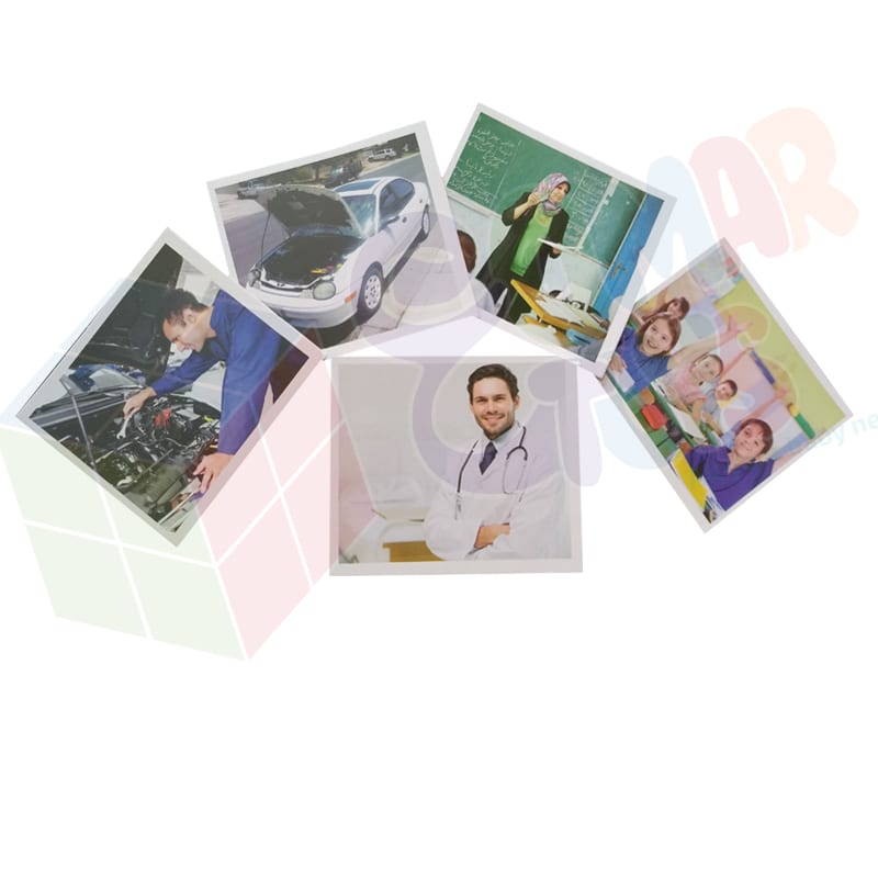 - التركيز والانتباه : في محاولة الطفل التعرف على الصور المختلفة ليعرف من يقوم بهذة المهنة.